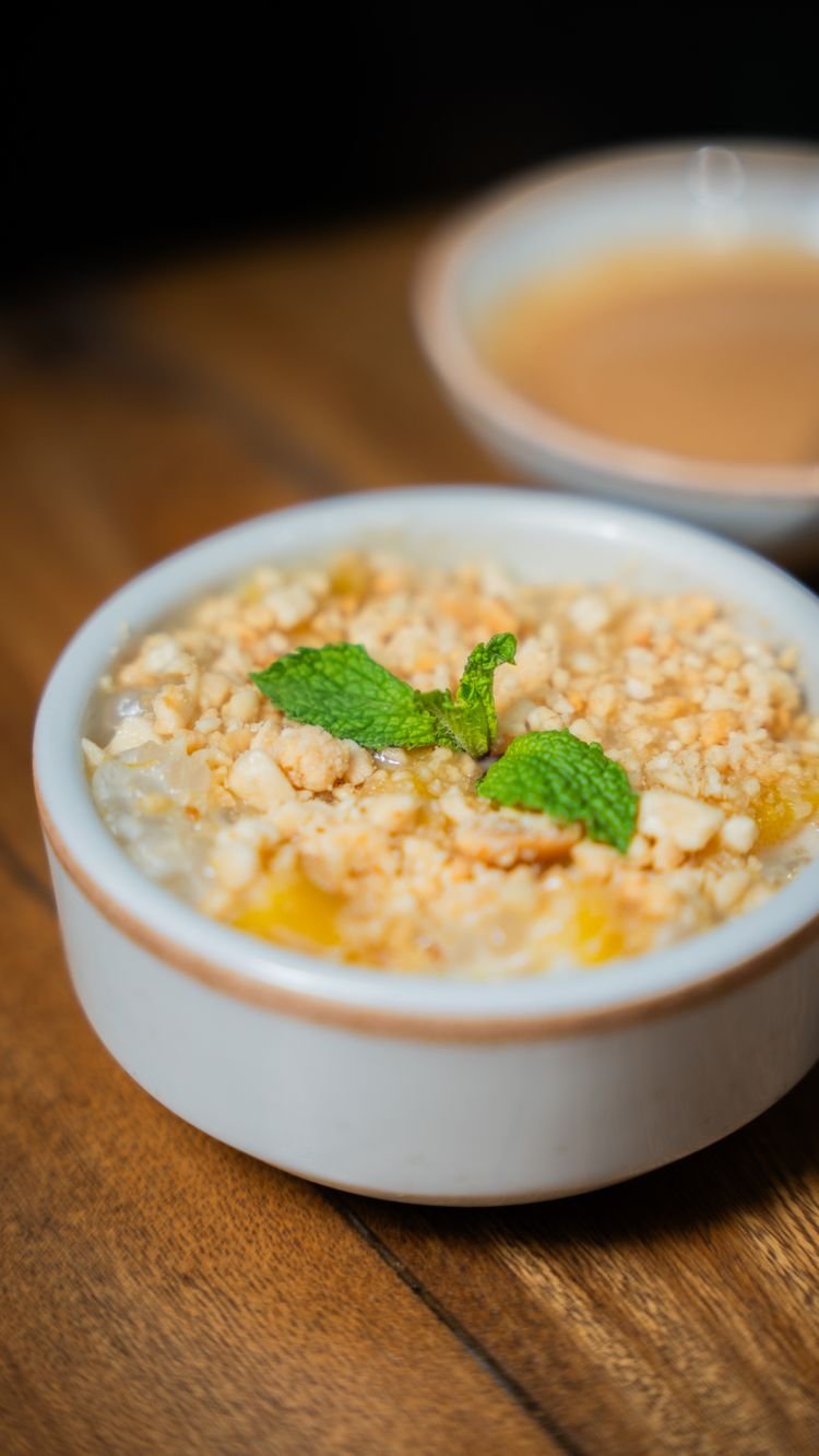 - Crema de tapioca: Nuestro postre más vietnamita, de coco, mango, maní y tapioca que son perlas de yuca.