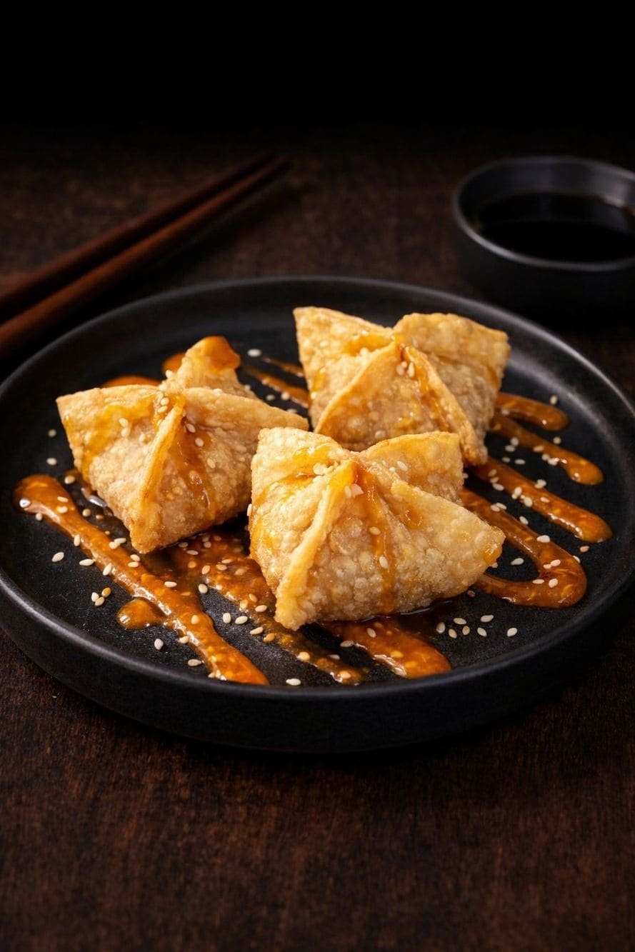 - Wontones de lychee: Delicados wontones de arroz, crujientes y dorados al punto perfecto, rellenos de lychee con un suave y sedoso toque de arequipe que aporta profundidad y dulzor equilibrado. Se finaliza con una decoración artística de salsa de arequipe, creando un contraste armonioso entre textura, aroma y sabor.