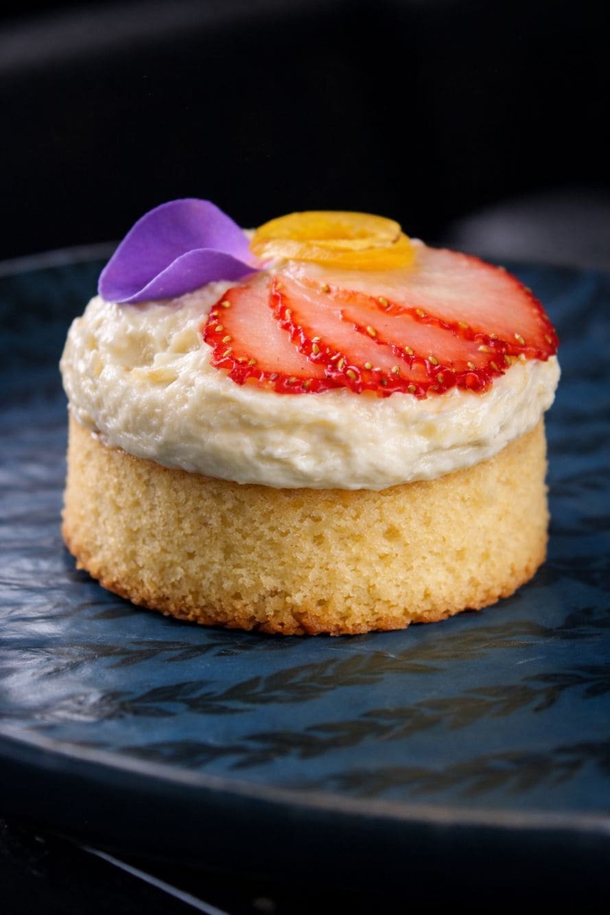 - Jardín qori: Bizcocho suave y ligero con aire de fruta fresca, terminado a mano con frutas de temporada y flores comestibles. Cada pieza es única, fresca y naturalmente equilibrada en dulzor.